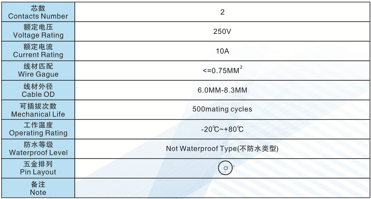芯數(Contacts  Number):   2 芯